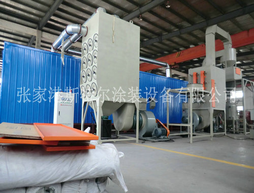 機械循環回收式噴砂房整套環保設備大部分由噴砂房室體、照明系統、空氣動力回收地板、分選器、噴砂系統、除塵器、風機、控制系統、工件輸送系統及操作人員防護系統組成。