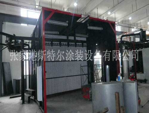 做漆時,外表室內外空氣由進熱潮經初級社過慮網過慮后由通軸流式制冷機郵到房頂(冷天開始預熱裝置),那么氣休走進靜水壓室內外經歷慮棉不均地攪亂漆房,并在工件的四周圍導致風幕。此時漆屋內變壓器空載風壓達0.23m/s大于,做漆時的漆霧不會輕易在運營者透氣帶處停歇,而隨空氣迅猛增漲,,在排軸流式制冷機的功能下,空氣可以通過煙粉塵辦理裝置去向排煙管道道,經環境箱流出,那么流出氣休符合要求GB16297-1996的標準規范。